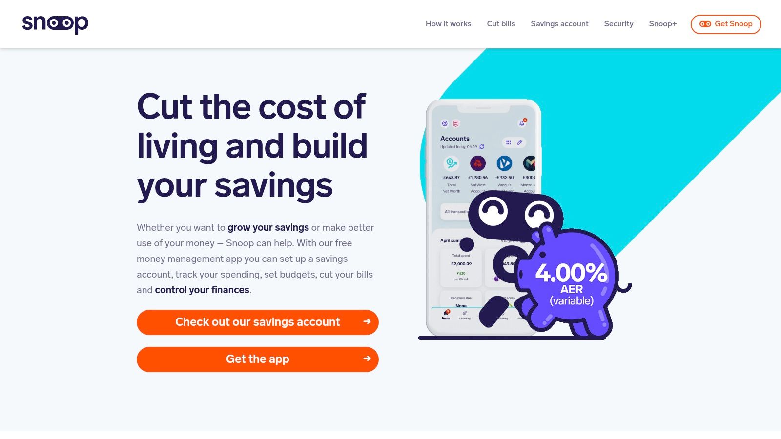 Snoop bills itself as a smart money app that puts your money back in your pocket, and it’s a brilliant choice if you want proactive saving suggestions alongside standard expense tracking. As one of the more intuitive apps that track spending in the UK, it uses Open Banking to link your accounts and credit cards, providing a clear overview of your spending habits and upcoming bills. Its unique selling point is its focus on actionable insights, actively looking for ways you can save money.