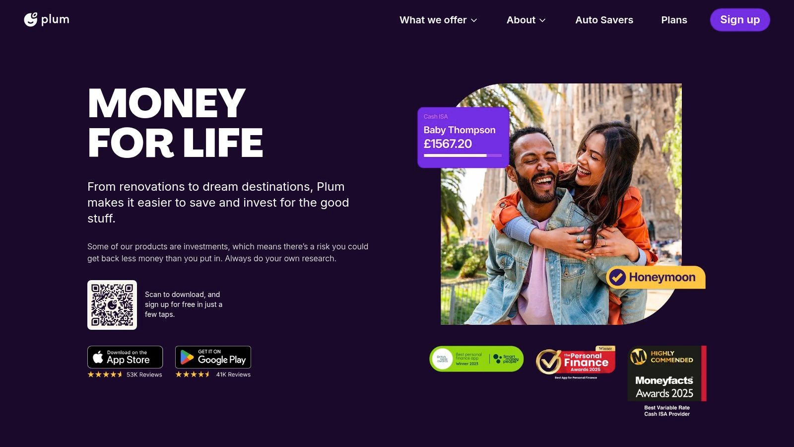 Plum offers a free Basic plan which includes the AI savings algorithm and one interest-earning Pocket. To unlock more powerful features like more Pockets, customisable saving rules, and advanced budgeting tools, you’ll need to subscribe. Paid plans include Plum Pro (£2.99/month), Plum Ultra (£4.99/month), and Plum Premium (£9.99/month), each adding more saving and investing capabilities.
