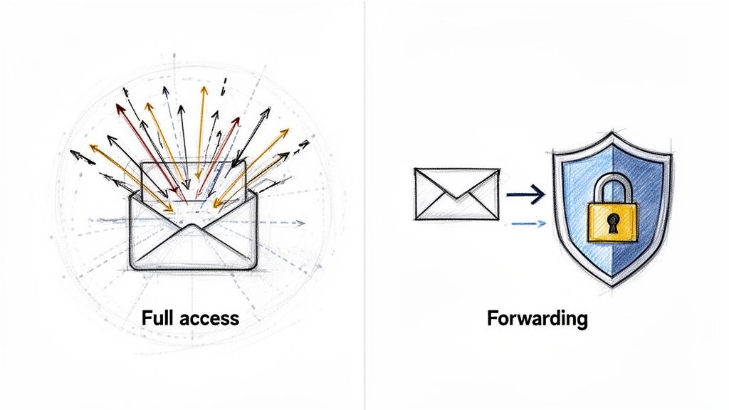 Then there's the forwarding model, which is what we use at Receipt Router. This approach puts you squarely in the driver's seat. Instead of giving a tool free rein, you get a unique, private email address. All you have to do is forward the specific receipt emails you want processed to that address. Simple.