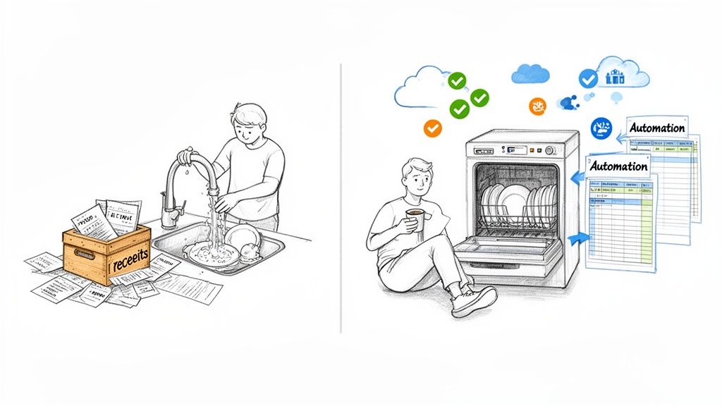Let’s get real for a moment. Your current accounting process probably feels a bit like washing a mountain of dishes by hand after a massive Sunday roast. You're scrubbing, sorting, and drying for what feels like an eternity. It's slow, it’s easy to miss a spot (or make a mistake), and it completely drains the time and energy you’d rather spend on literally anything else.
