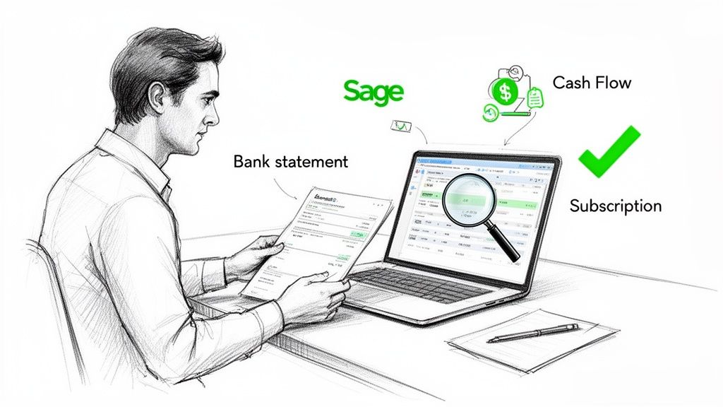 While Sage has its own quirks, the fundamental principles of matching are universal. If you want a solid grounding in the basics, it's worth learning how to reconcile bank accounts properly, as this knowledge applies no matter what software you're using.