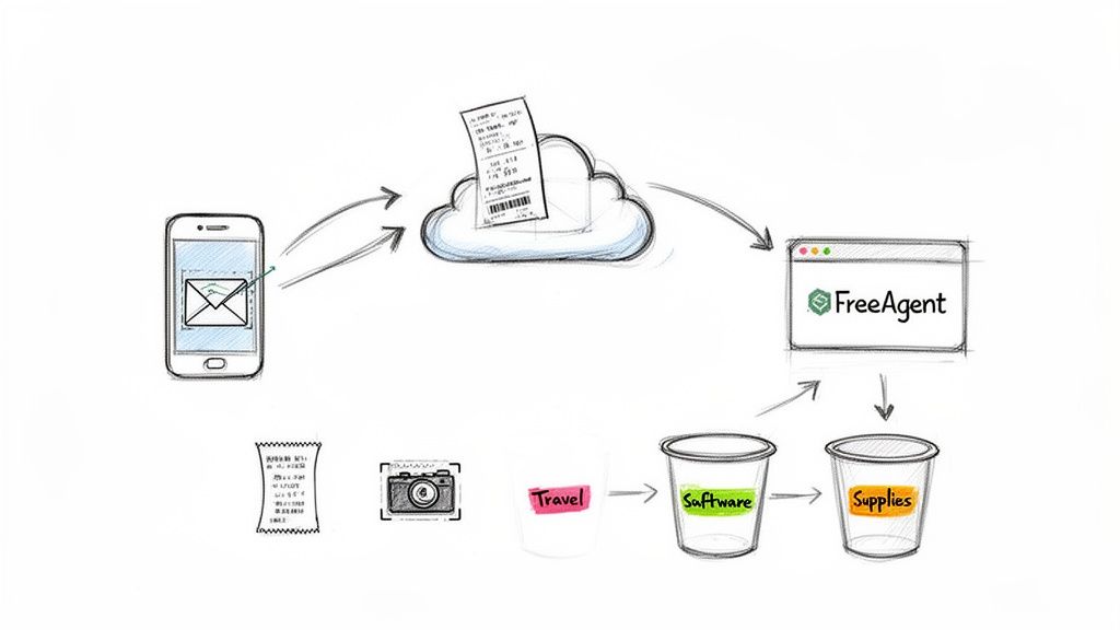 The real goal here is to kill off manual data entry for good. It's a time-sink and a breeding ground for errors. By connecting a tool like Receipt Router directly to your FreeAgent account, you can create a workflow that handles most of your expenses without you lifting a finger.