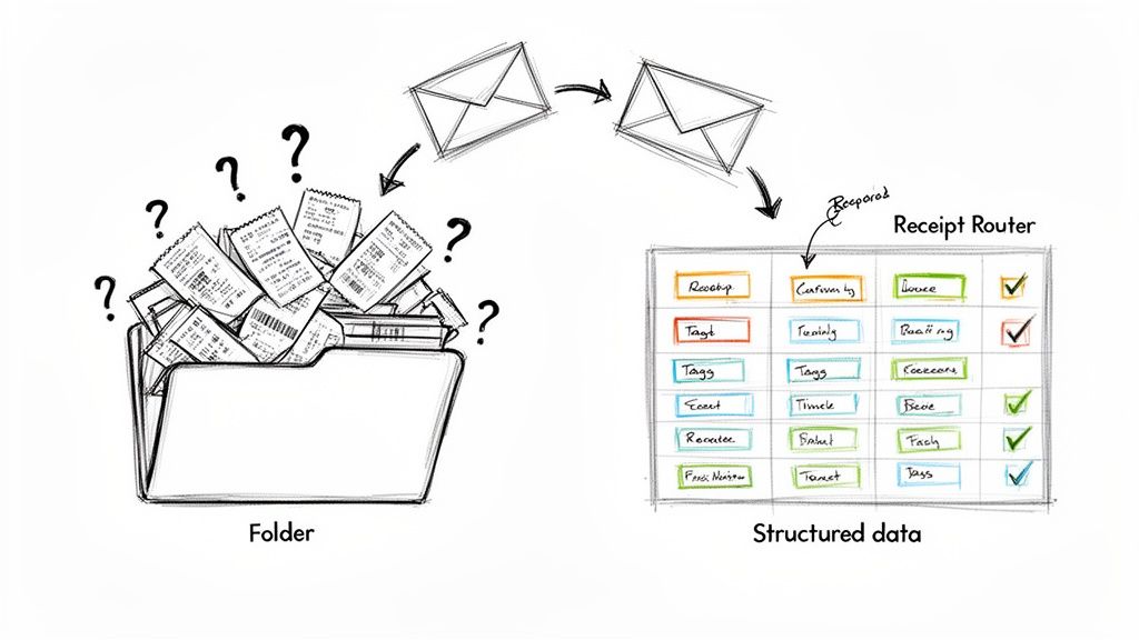 Simply shunting all your receipt emails into another inbox or a cloud folder doesn't really solve the problem. It just moves the mess. You’ve essentially created a digital shoebox, and you're still left with the soul-crushing task of manually opening each email, downloading the receipt, and punching the details into your accounting software.