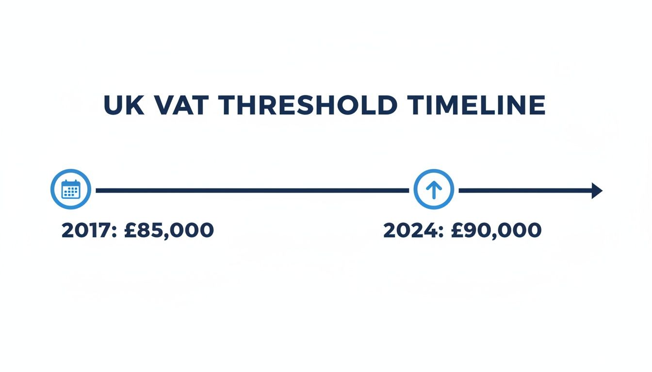 As of 1 April 2024, the government bumped the registration threshold up from £85,000 to £90,000. This was a pretty big deal. It was the first increase since 2017, in fact, and it put the UK's threshold at the joint highest in the OECD. The change was expected to let about 28,000 small businesses off the VAT hook. You can read the full details in the official government guidance on VAT thresholds.